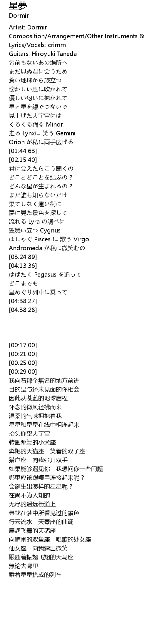 | [00:17.00] | Artist: Dormir |