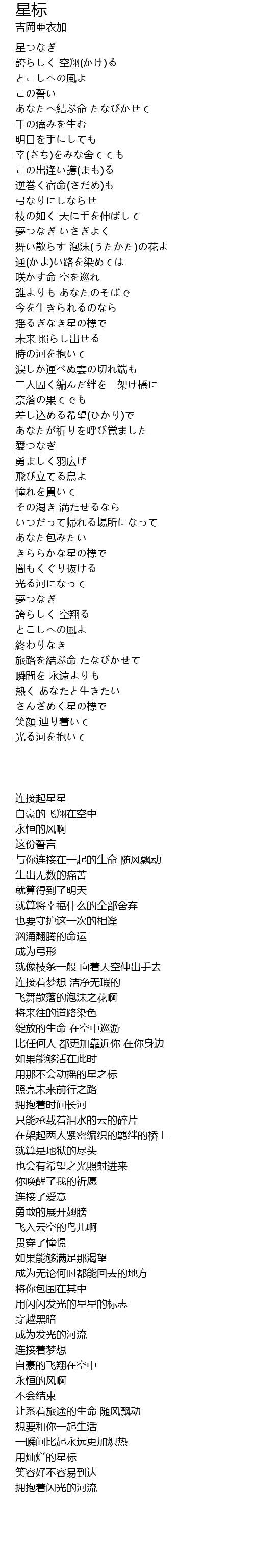 | [00:10.57] | あなたへ結ぶ命 たなびかせて |