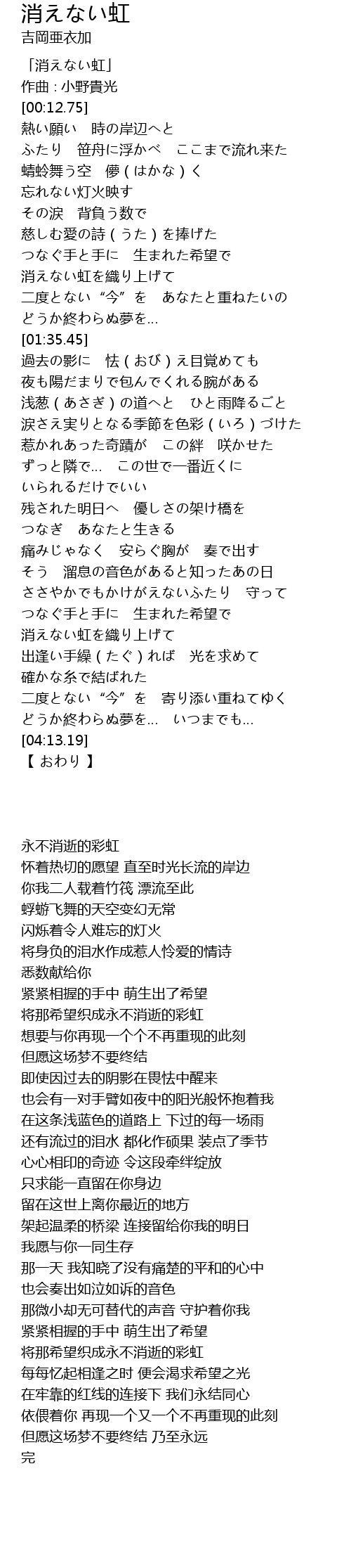 | [00:01.75] | 「消えない虹」 |