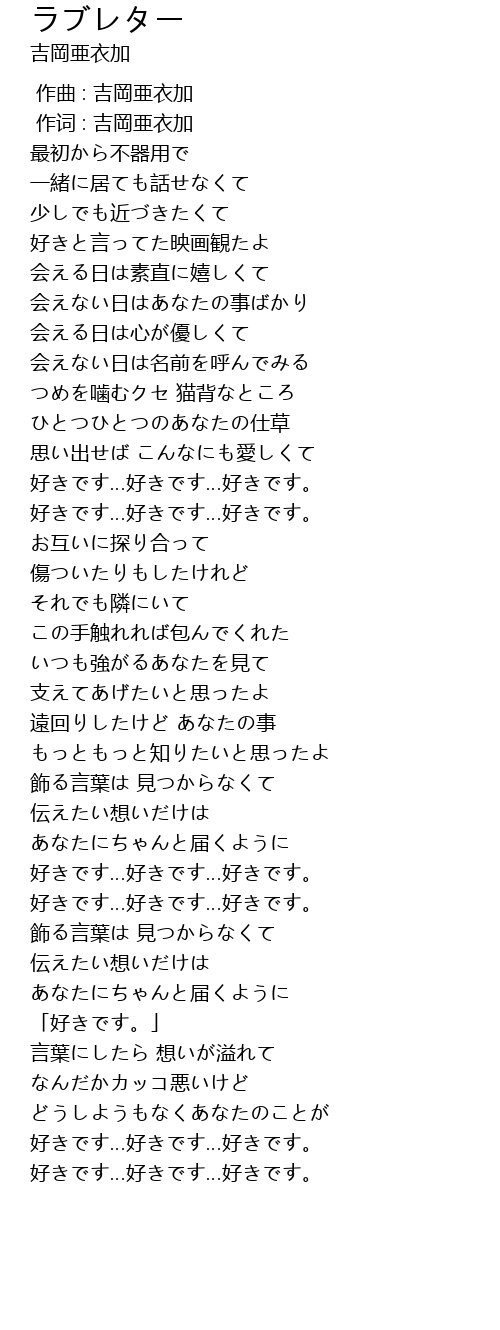 | [00:01.00] | 作词 : 吉岡亜衣加 |