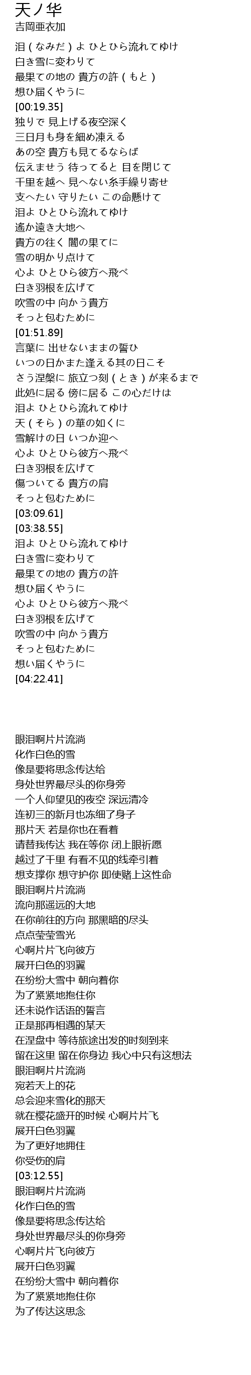 | [03:44.72] | 白き雪に変わりて |