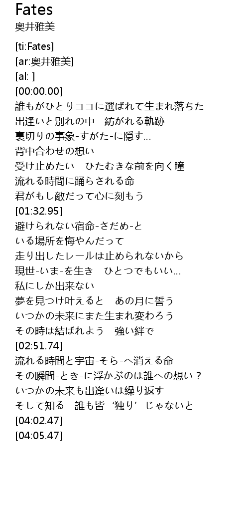 | [01:44.70] | 避けられない宿命-さだめ-と |