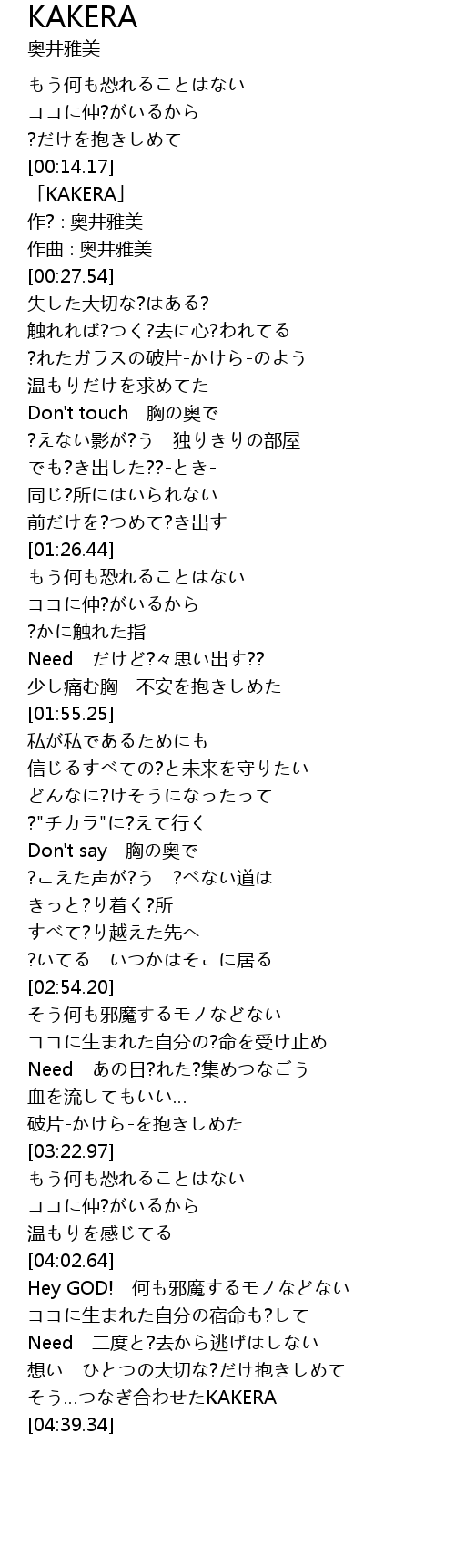 | [04:32.60] | そう…つなぎ合わせたKAKERA |