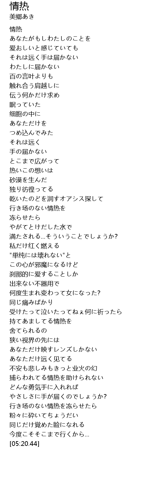 | [04:23.51] | 行き场のない情热を冻らせたら |