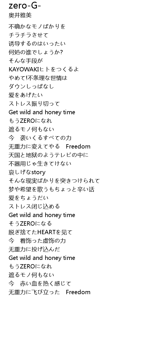 | [01:09.12] | 无重力に変えてやる Freedom |