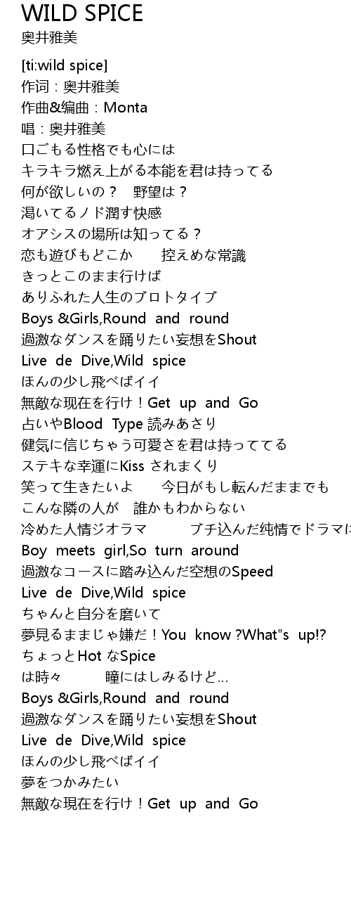 | [03:35.865] | ちょっとHot なSpice は時々 瞳にはしみるけど… |