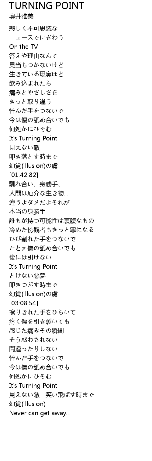 | [04:15.50] | It' s Turning Point |