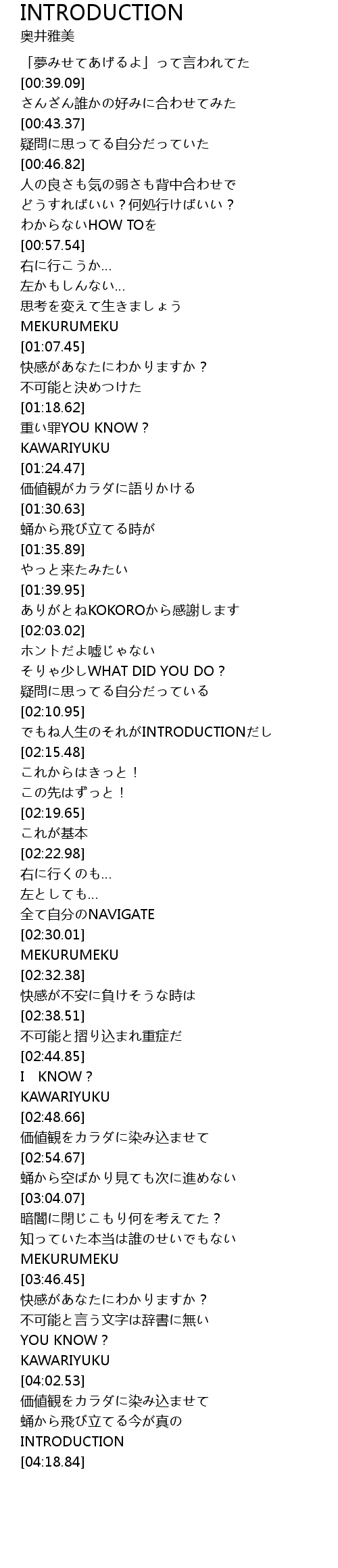 | [02:11.99] | でもね人生のそれがINTRODUCTIONだし |