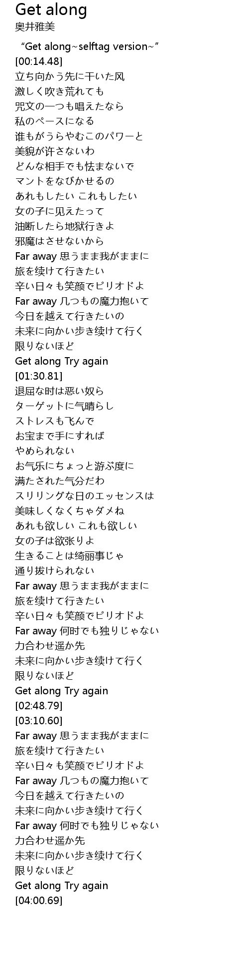 | [00:00.00] | “Get along~selftag version~” |