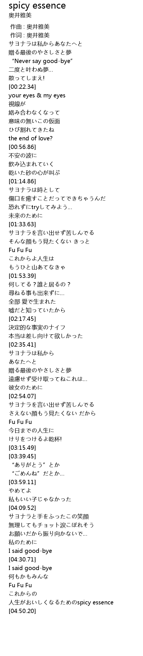| [04:43.02] | 人生がおいしくなるためのspicy essence |