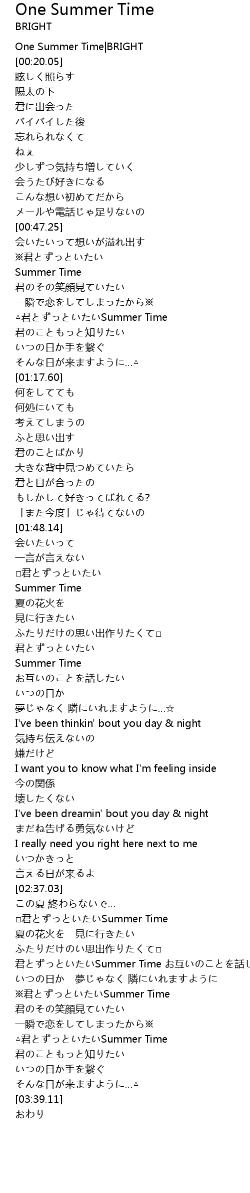 | [00:00.64] | One Summer Time|BRIGHT |