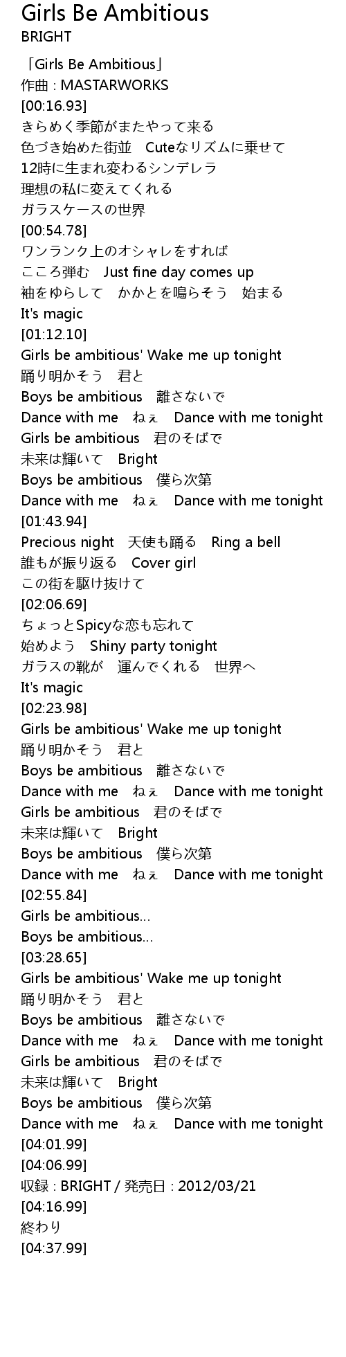 | [00:00.93] | 「Girls Be Ambitious」 |