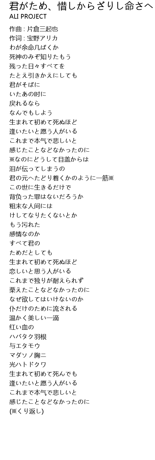 | 作词 : 宝野アリカ | |