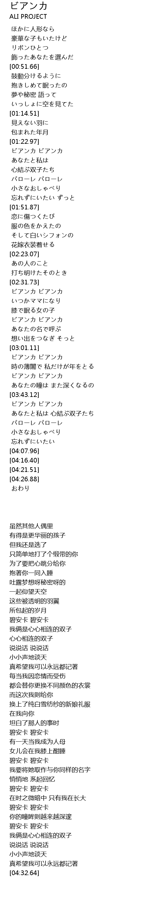 [03:32.22] ビアンカ ビアンカ