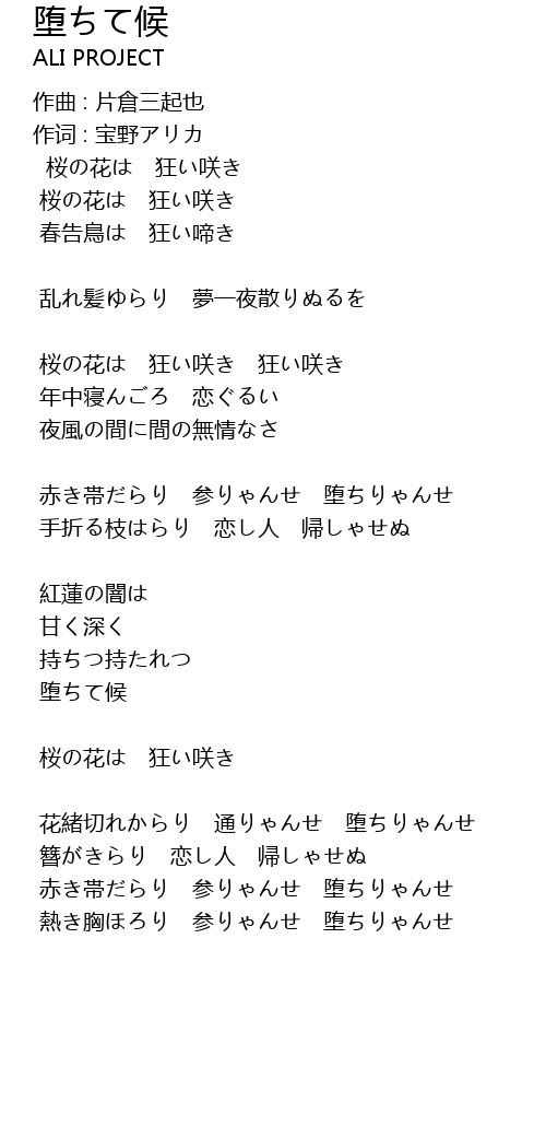| 花緒切れからり 通りゃんせ 堕ちりゃんせ | |