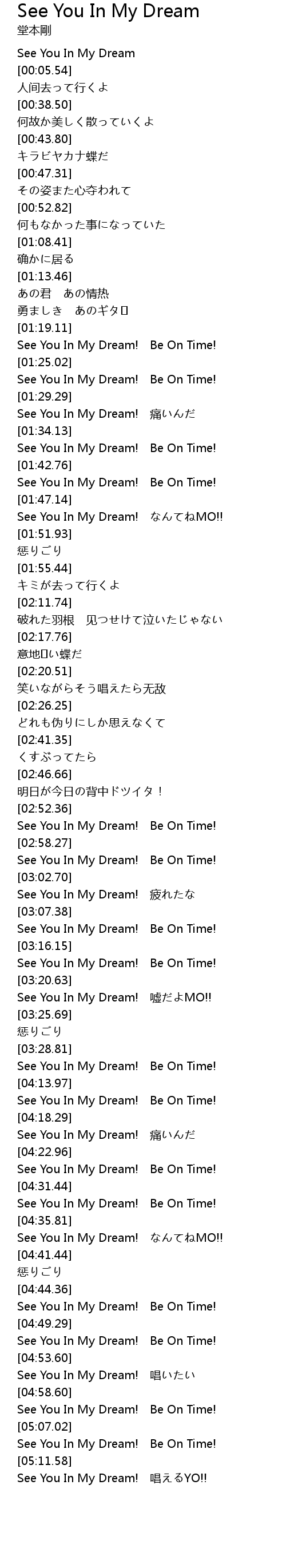 | [05:03.33] | See You In My Dream! Be On Time! |
