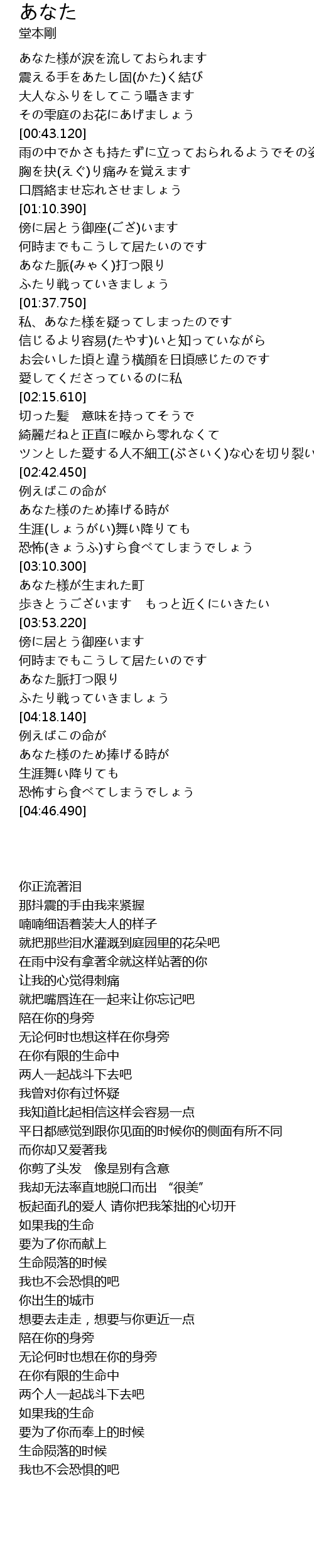 | [02:31.520] | ツンとした愛する人不細工(ぶさいく)な心を切り裂いてください |