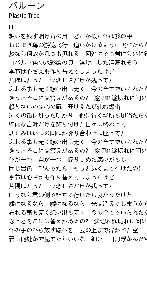 | Artist | Plastic Tree |