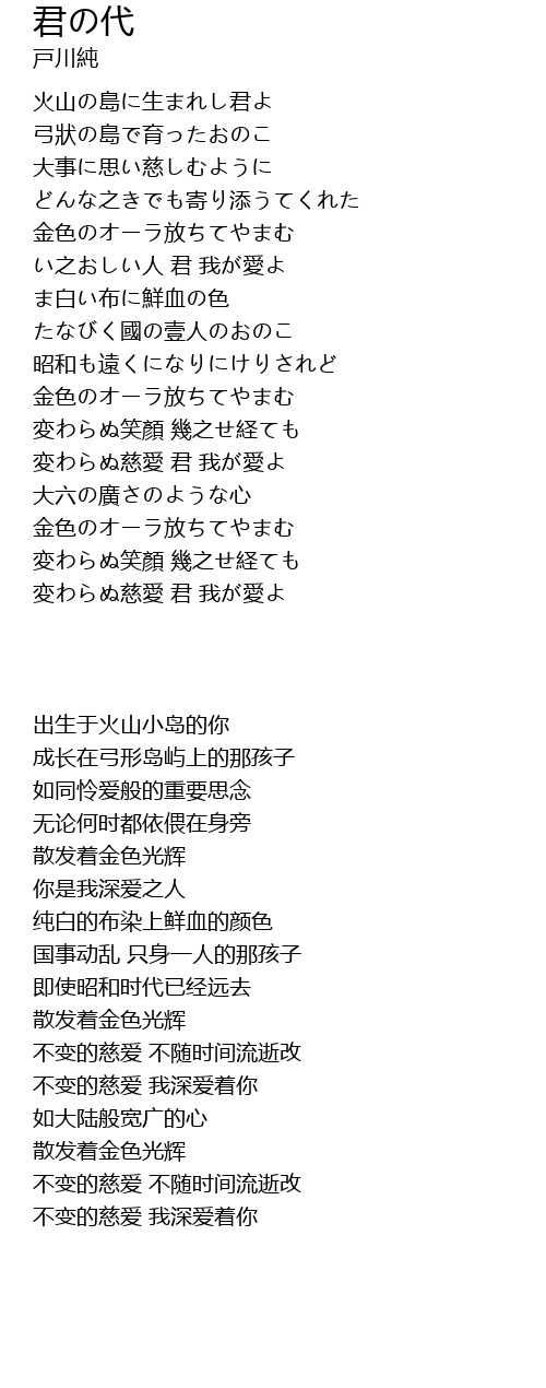 | [02:39.34] | 変わらぬ笑顏 幾之せ経ても |