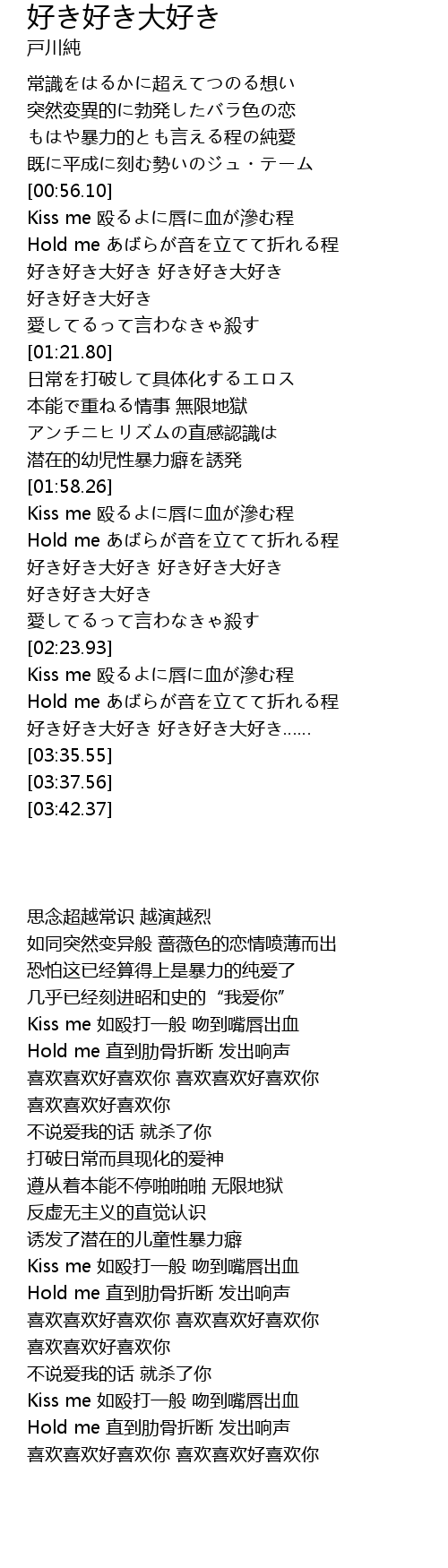 | [03:00.31] | 好き好き大好き 好き好き大好き…… |