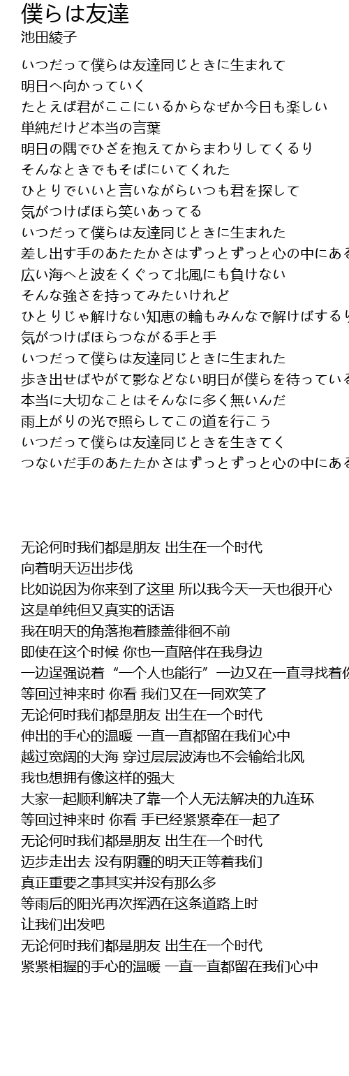 | [00:01.00] | いつだって僕らは友達同じときに生まれて |