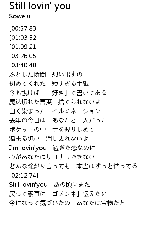 | [00:26.54][03:26.05] | Sowelu-Still lovin'you |
