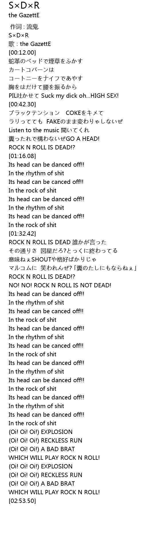 | [00:10.00] | 歌:the GazettE |