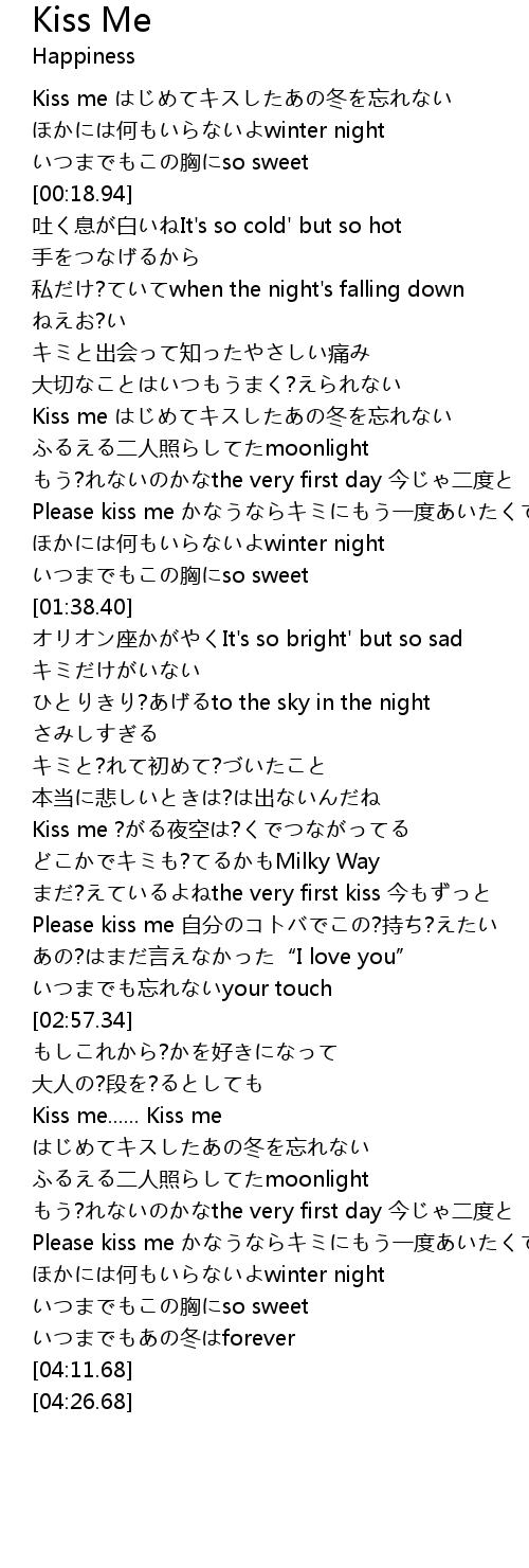 | [00:00.30] | Kiss me はじめてキスしたあの冬を忘れない |