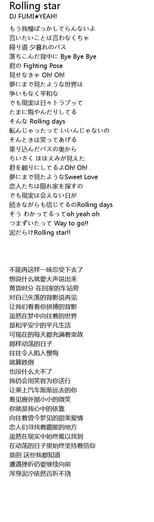 | [01:23.200] | 続きながらも信じてるのRolling days |