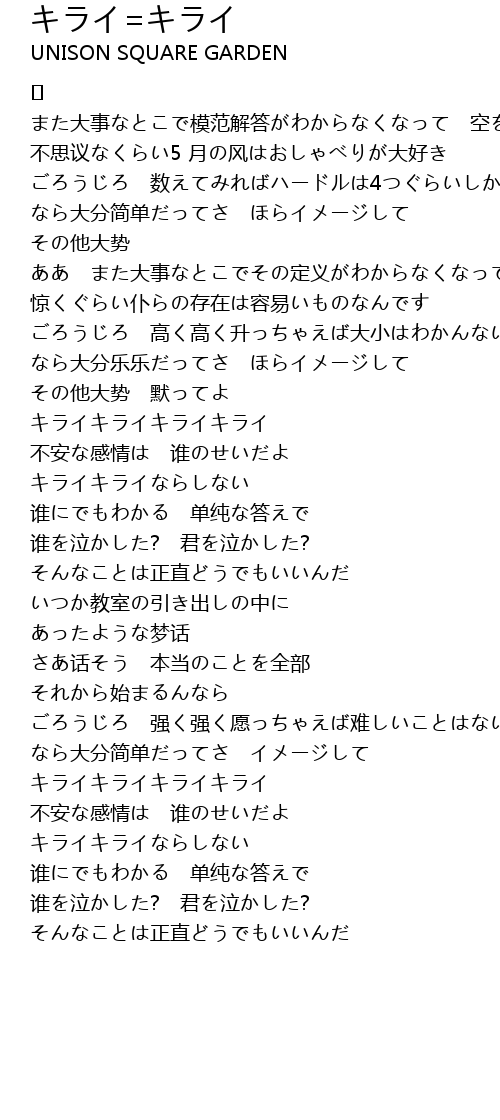 | Song | キライ=キライ |