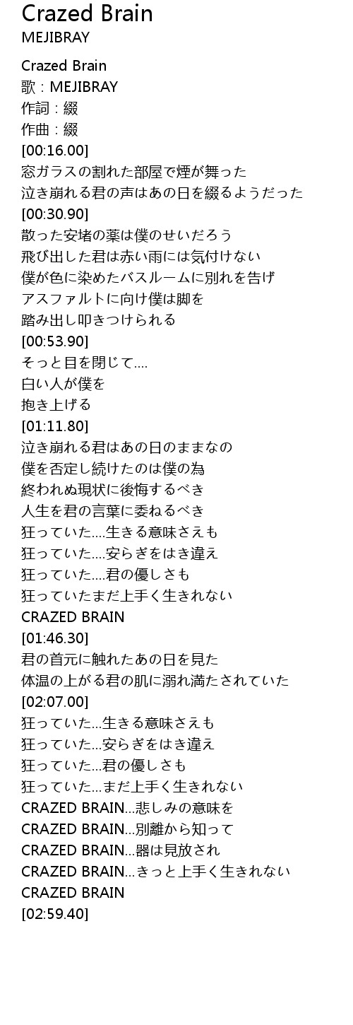 | [02:50.85] | CRAZED BRAIN...きっと上手く生きれない |