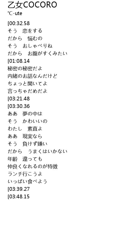 | [02:41.43][03:39.27] | 毎日の楽しみがある 女の子だもん |