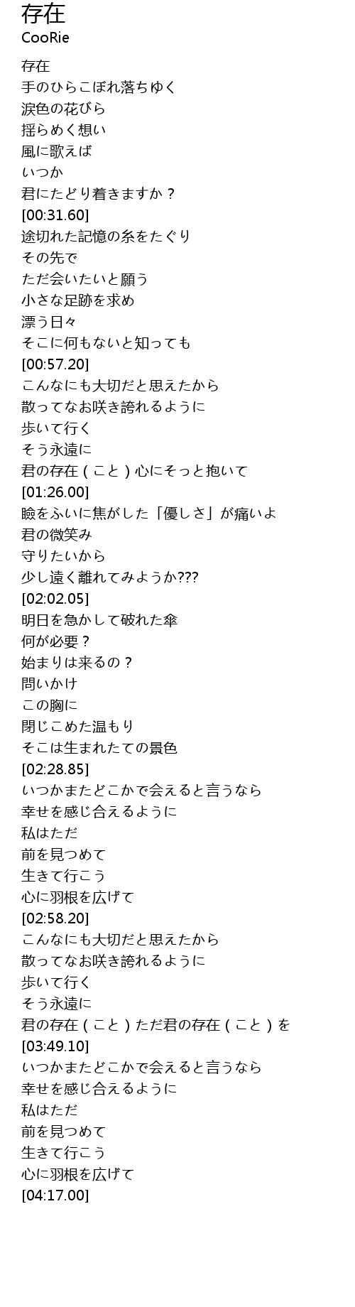 君の存在(こと)ただ君の存在(こと)を |