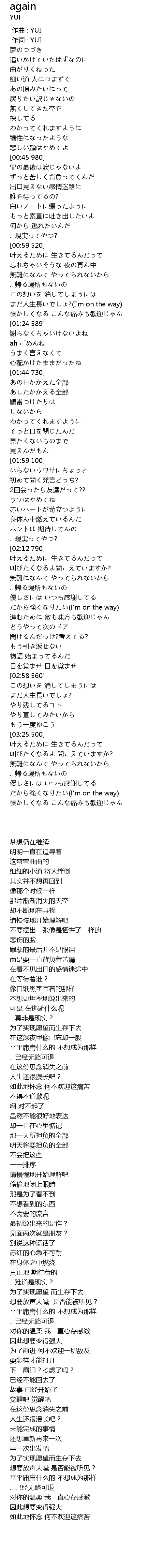 | [00:00.00] | zuo qu : YUI |