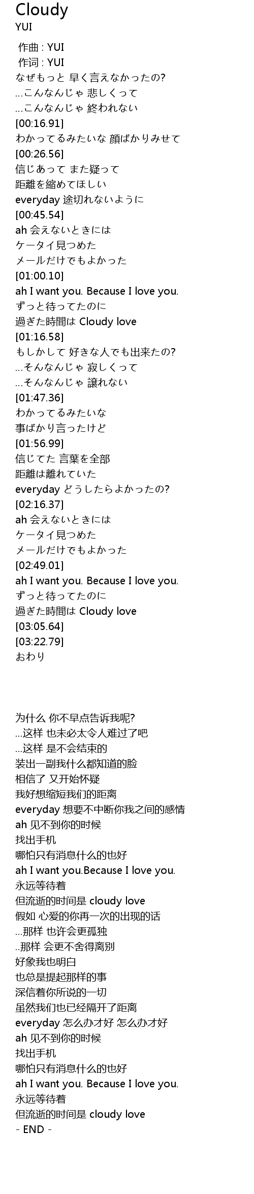 | [00:01.00] | 作词 : YUI |