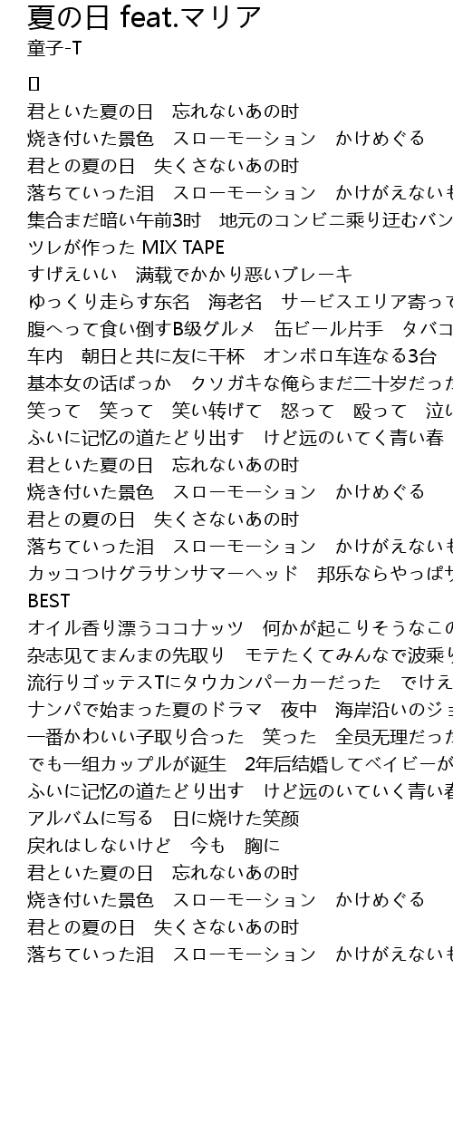 | ふいに记忆の道たどり出す けど远のいていく青い春 君といた夏の日 | |