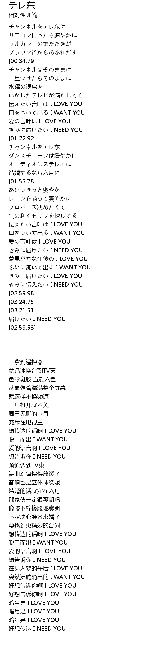 | [03:32.81][03:24.75][03:17.15] | 合言葉は I LOVE YOU |