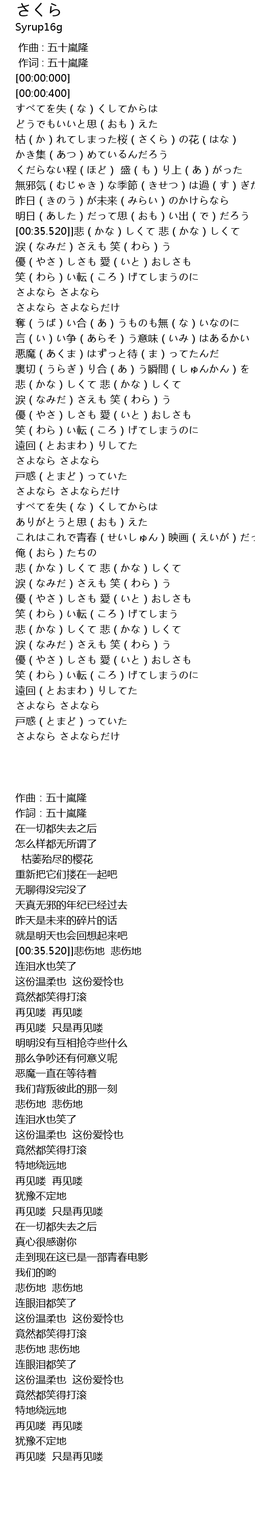 | [02:53.000] | 悲(かな)しくて 悲(かな)しくて |
