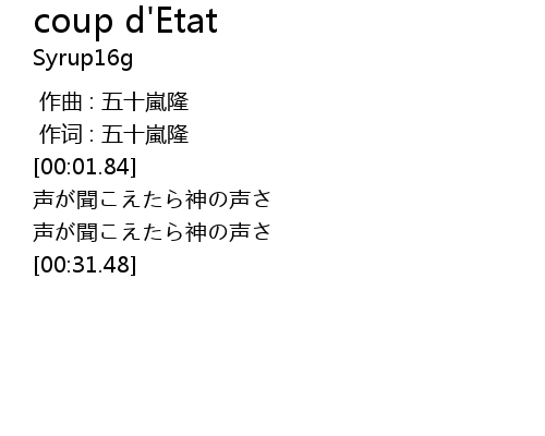 | [00:15.43] | 声が聞こえたら神の声さ |