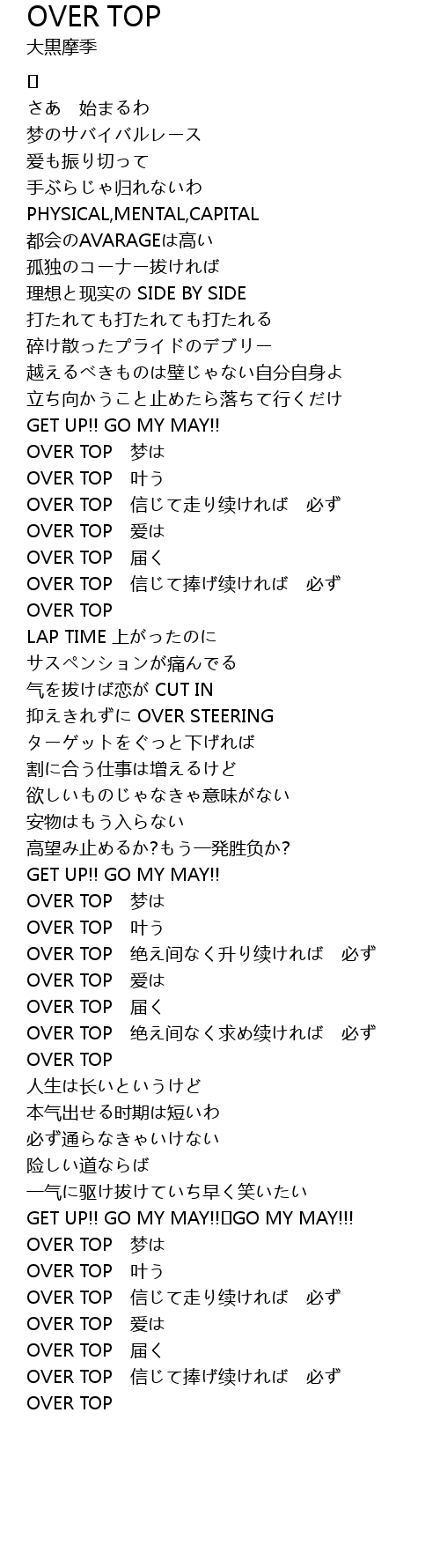 | OVER TOP 信じて捧げ续ければ 必ず | |
