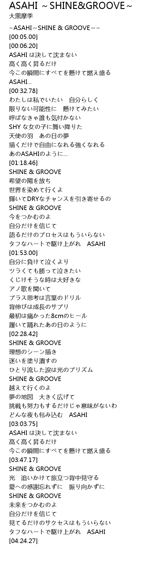 | [00:00.20] | ~ASAHI~SHINE & GROOVE~~ |
