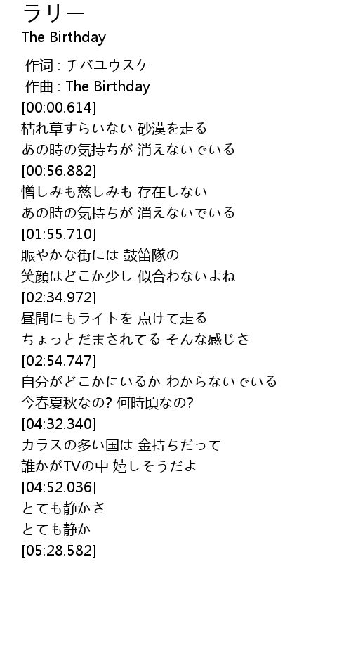 | [00:00.307] | 作曲 : The Birthday |