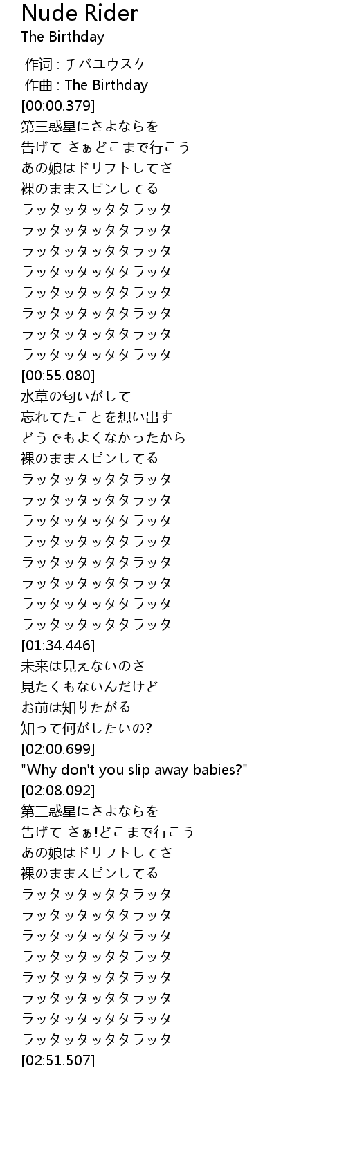 | [00:00.189] | 作曲 : The Birthday |