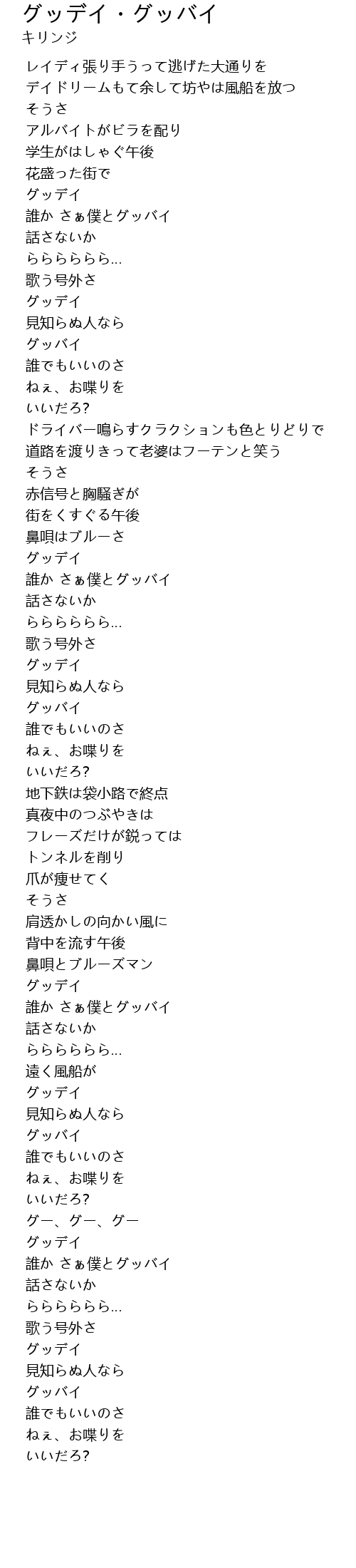 | [02:00.699] | グッデイ |