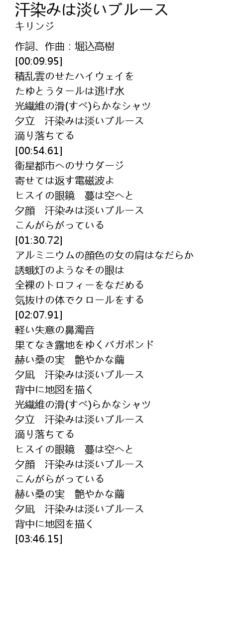 | [03:20.69] | 夕顔 汗染みは淡いブルース |