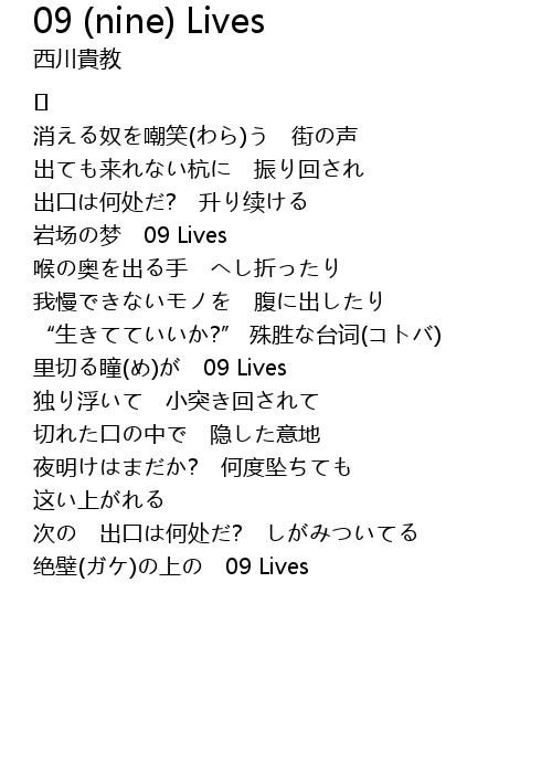 | Song | 09 (nine) Lives |