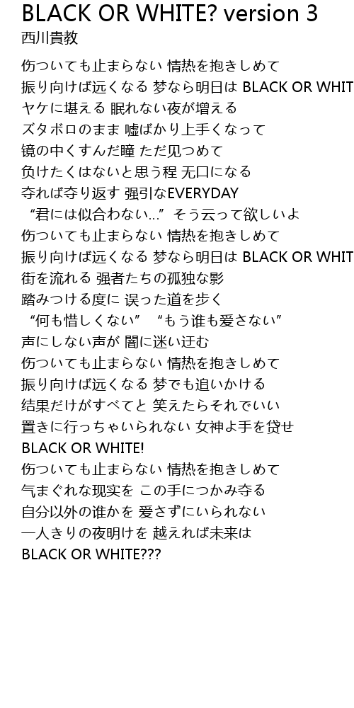 | 振り向けば远くなる 梦なら明日は BLACK OR WHITE? | |