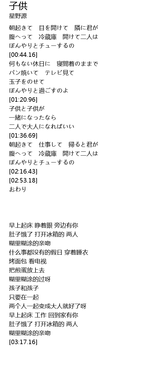 | [01:54.47] | 腹へって 冷蔵庫 開けて二人は |