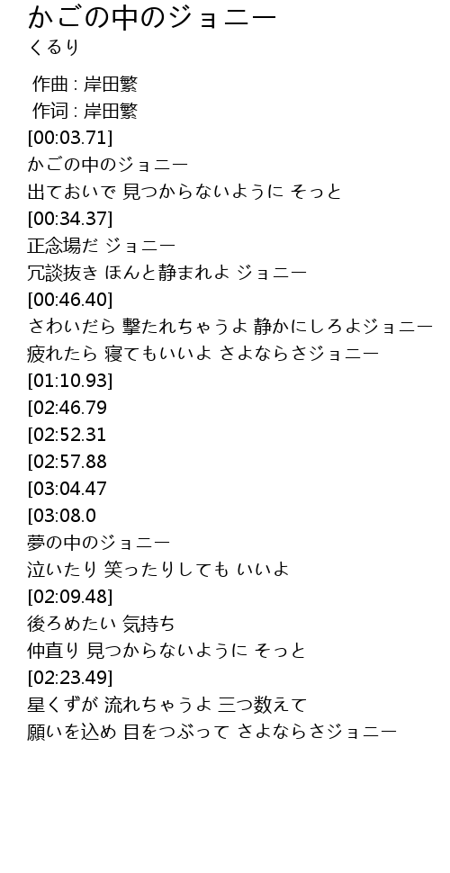 | [02:35.54] | 願いを込め 目をつぶって さよならさジョニー |