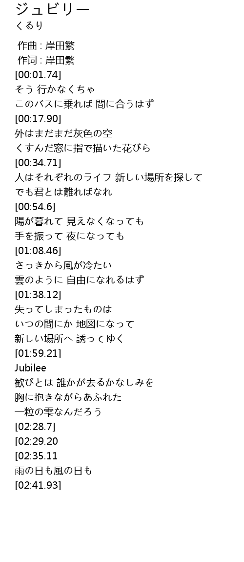 | [00:35.51] | 人はそれぞれのライフ 新しい場所を探して |